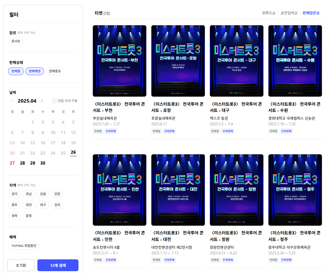 미스터트롯3 콘서트 예매 단계별 가이드