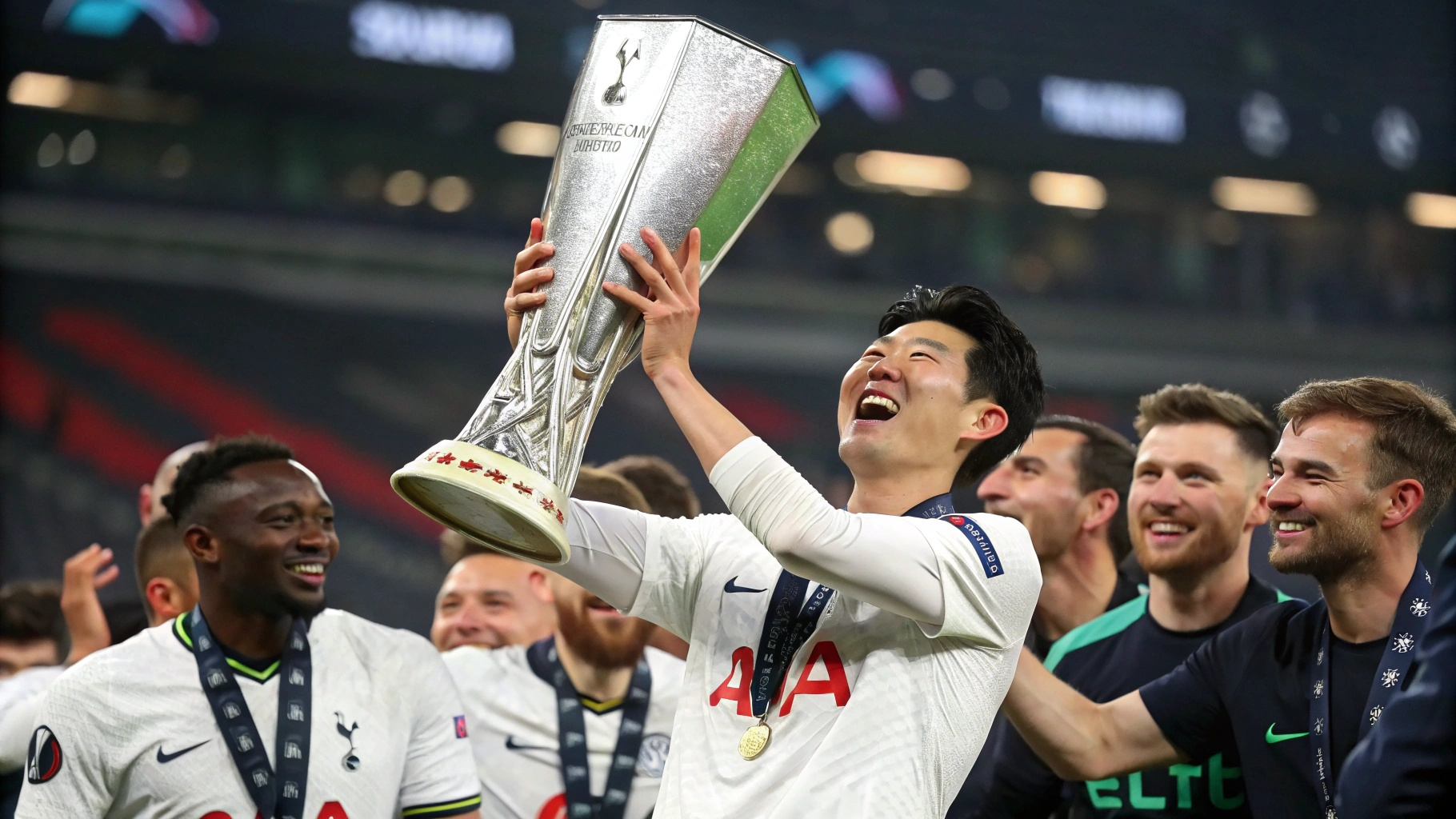 - 우승 세리머니: 태극기를 두른 손흥민이 15kg 트로피를 번쩍 들어올림